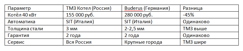 Европейские бренды предлагают аналогичные по характеристикам котлы по цене в 1,5-2 раза выше. При этом ключевые компоненты — автоматика и горелки — часто производятся теми же итальянскими заводами, что поставляют комплектующие для ТМЗ.